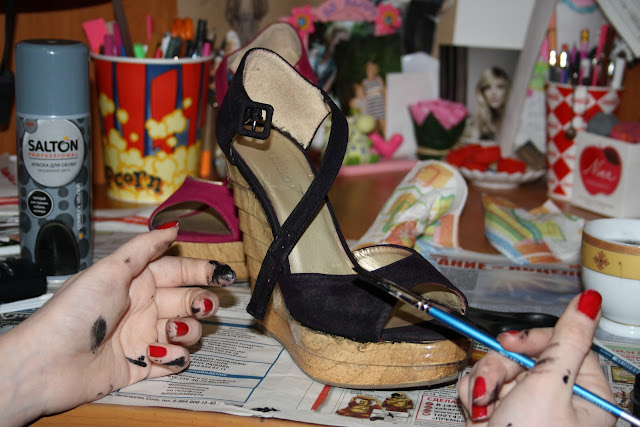 Я наконец-то сделала то,что хотела.Перекрасила свои копыта.Помните,я уже писала об этом.Тода вы все меня отговаривали от этого.Но вчера мне так захотелось черные танкетки,что я не устояла.И перекрасила.Правда используя не краску для