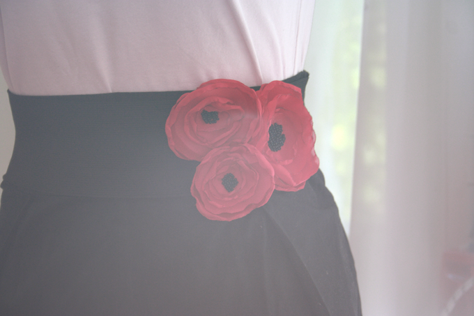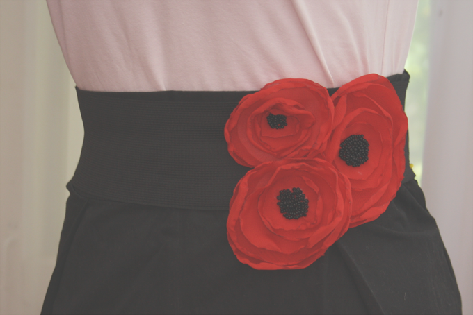 И второй вариант ,для которого нам понадобится еще черная широкая резинка,которую можно сделать поясом.Смотрите этот D.I.Y !После того,как из резинки сделан пояс нужно просто приколоть на нее цветы.И готов пояс :D