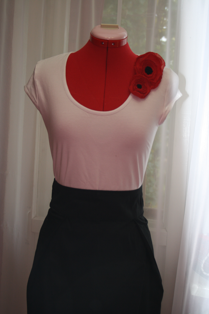 Первый вариант использования - брошь,украшение для простой белой футболки.