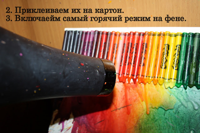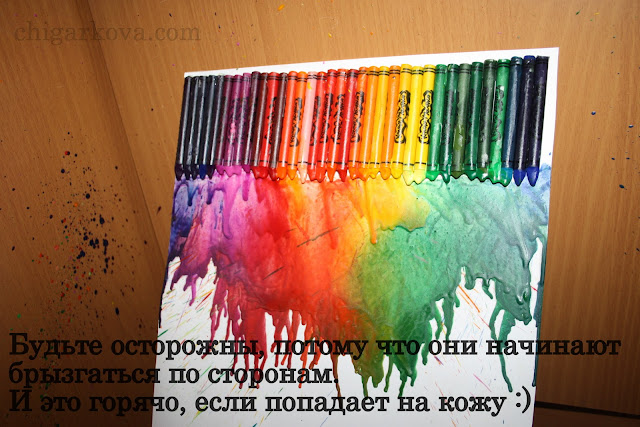 Мне , кажется, я очень часто пишу , что все, что ни делается - все к лучшему. Недавно я рисовала восковыми мелками, которые положила возле вентилятора ноутбука. Я и представить не могла, что они тают. Не знаю почему я не задумалась об этом. Но от горячего воздуха они растаяли и испачкали мне плед . Я сначала злилась очень, и вот пока я сидела отковыривала воск с ворсинок в голову и закралась такая идея.