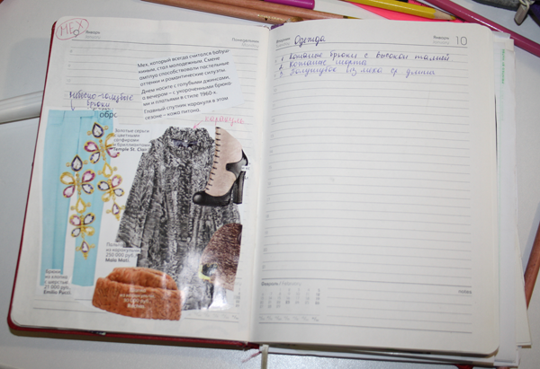 Мне нравится, у меня все так же обстоит: вырезки, записи, планы и т.д. Очень миленько-)))