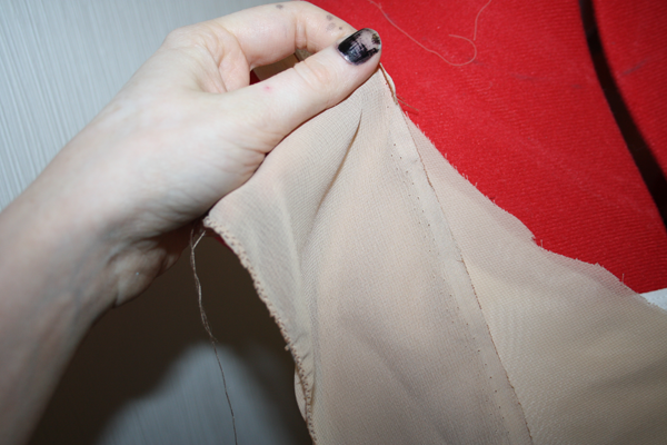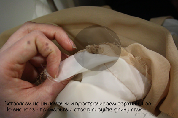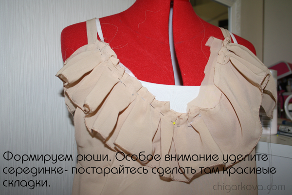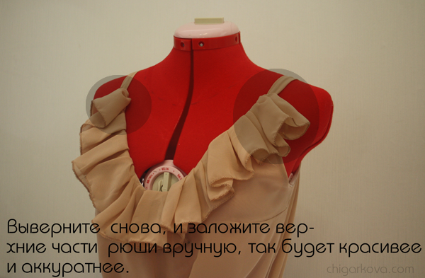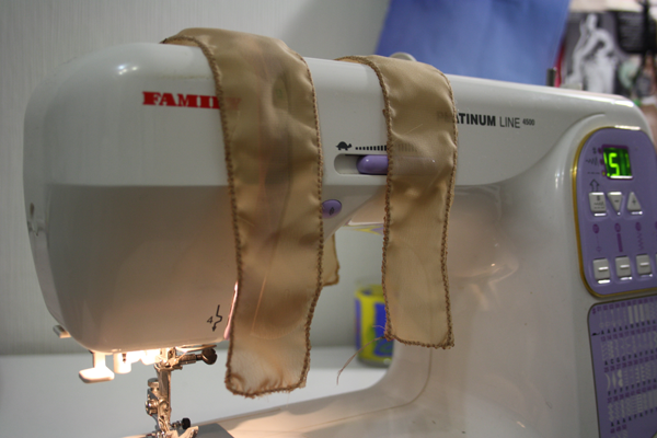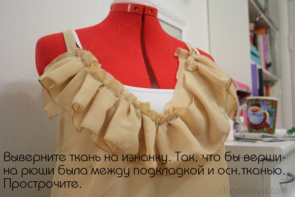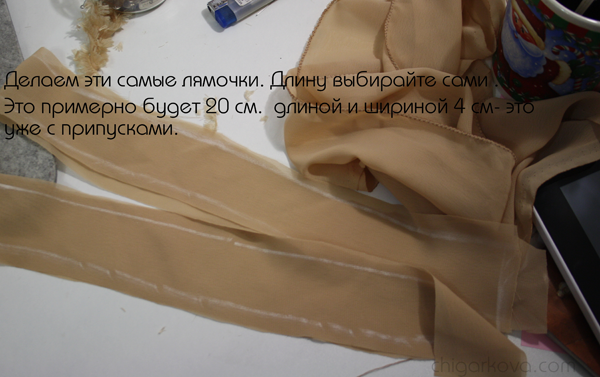 Я шила из остатков шифона и обычной подкладочной ткани. Понадобится материала совсем чуть-чуть, окало метра.Подкладки сантиметров 70-80. Ткань советую использовать легко поддающеюся драпировке. подкладку- трикотажную.
