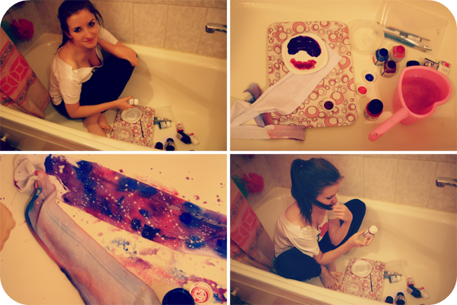 я сижу и крашу футболку. Чувствую опять придется пить студенческий коктейль из лимонника и кофеина, и всю ночь провести над учебниками по истории костюма :)