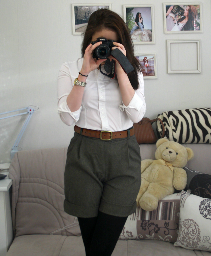 Бермуды. Я хотела вначале изумрудно-зеленые, и нашла идеальную ткань, к сожалению, она была идельно только по цвету, но совсем не подходила по текстуре - жесткая плотная костюмная ткань. Подойдет отлично для жакета или юбки, но не для брюк или шорт. Поэтому пришлось искать ей альтернативу, не совсем тот цвет что я хотела, но главный критерий при выборе ткани был : " она должна сочетаться с коричневым" - выполнен! Поэтому, собственно, я ни о чем не жалею :)