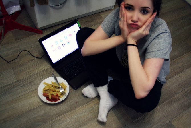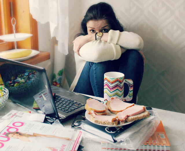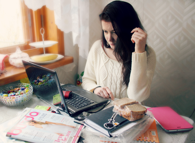 Сейчас я вернулась домой и обнаружила, что я с вечера так и не убирала ничего и моя спальня похожа на... ужасно грязная она, короче. Но я не хочу ничего убирать, поэтому организовала себе мини-офис на кухне и решила позаниматься учебой тут.