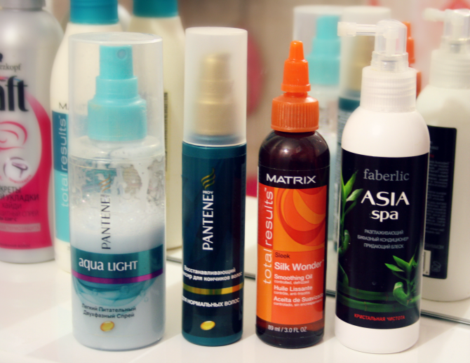 Сыворотка Pantine (2) и масло Matrix (3) по сути выполняют одну и туже функцию. Но чаще я использую Matrix. Но формула деййствий одна и таже. Сначала фен и утежки, потом масло на кончики. Если волосы секутся- это спасение. Когда у меня выдается день я мою голову, и наношу масло на всю голову, что бы волосы просалились. После таких манипуляций они секутся меньше.