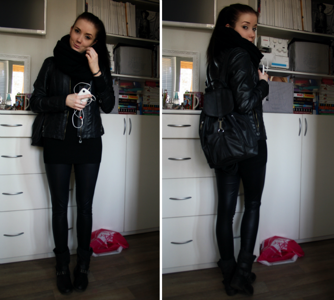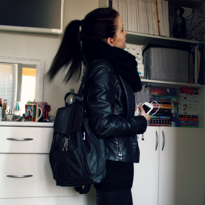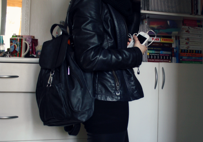 Рюкзак - Империя сумок, легинсы и шарф- Reserved, сапоги- Centro, куртка- Savage, свитер - Твое, резинка на руке - бесценна хе-хе.
