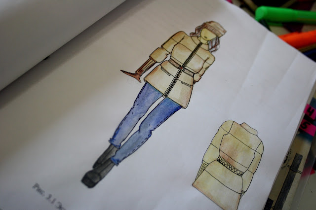 Конфекционирование - это такая штука, когда нужно подобрать для разработанного скиза пакет материалов, т.е основную ткань, подкладку, прокладку, утеплители ( если это куртка и тп), фурнитуру , и даже нитки. Все это должно по показателям, артикулам и цифрам подходить, и это интересно, но иногда нудновато, особенно когда дело доходит до печатания таблиц в ворде, хе-хе.