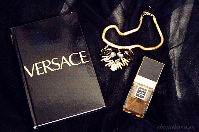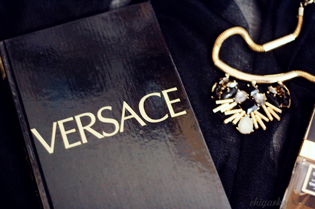 Честно говоря никогда не интересовалась домом Versace, книга была куплена случайно вместе с биографией Armani и любимой Chanel. Но что-то пошло не так и вместо биографии легендарной мадемуазель лавры первенства ушли к книге с черно- золотой обложкой, белоснежными страницами и очень красивым шрифтом. Всё это словно манило и говорило мне " начни с меня", ведь я давно питаю слабость к сочетанию черного с золотом.