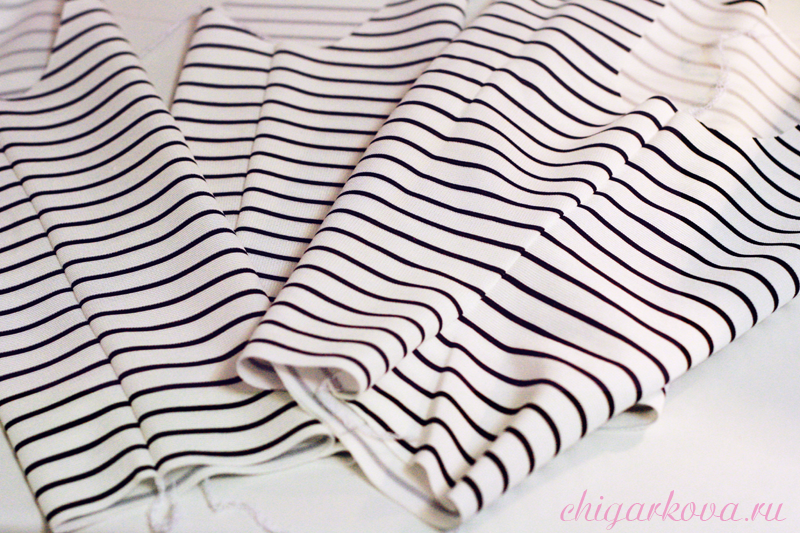 Так вот ткань я полюбила, как говорится, и решила сделать все идеально. Что бы все полосочки переходили одна в другую. Тем более ткань очень податливая это было не сложно сделать даже не сметывая.
