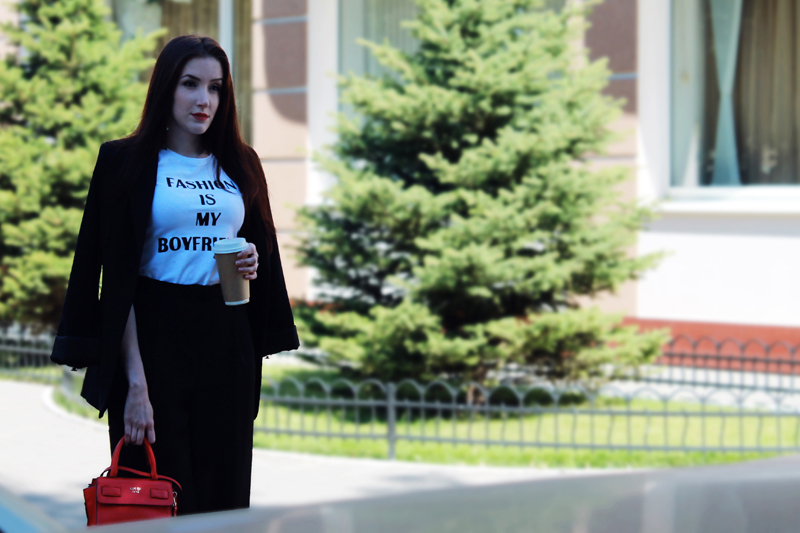 Жакет - Befree | Брюки и футболка -сшила я | сумка- Guess | туфли - Lauf