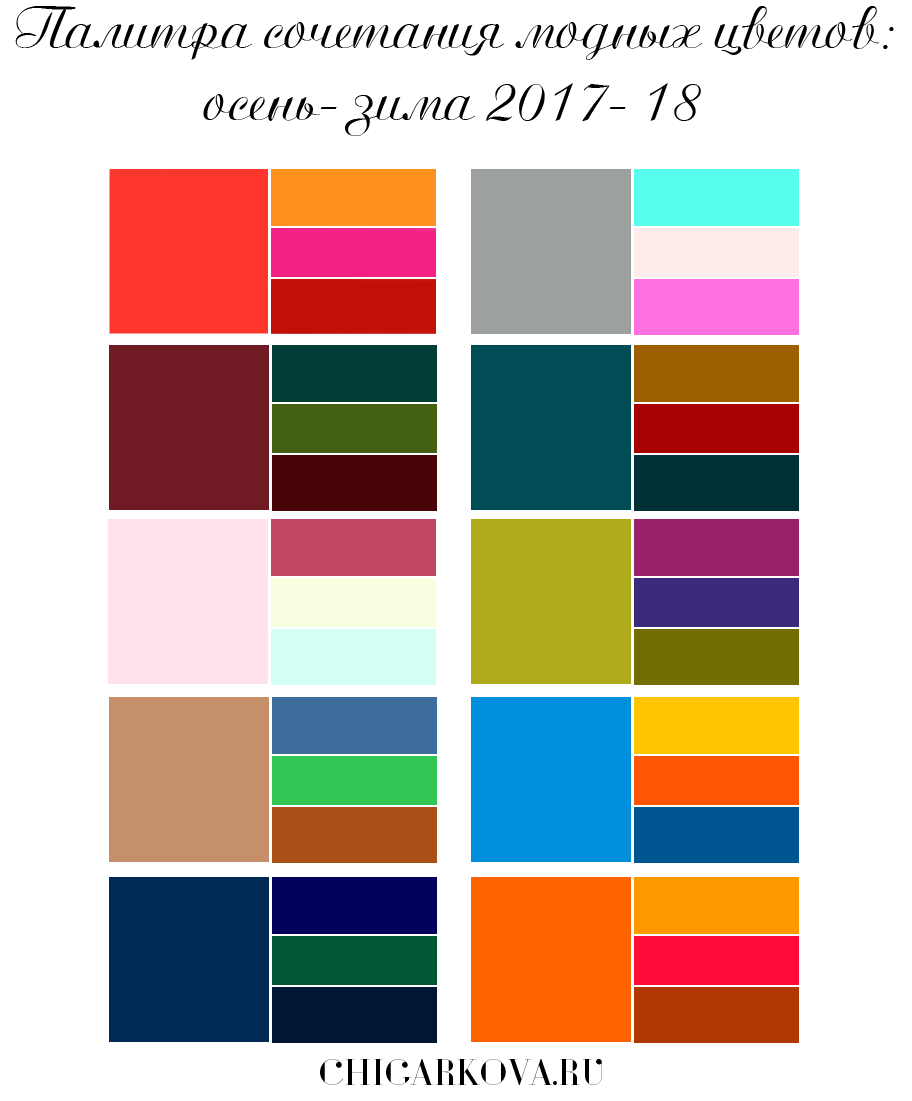 Для того чтобы вам было проще применить модные сочетания в повседневной жизни, я подготовила для вас схему сочетаний. Вы можете сохранить ее на свой мобильный и отправляться на шопинг .