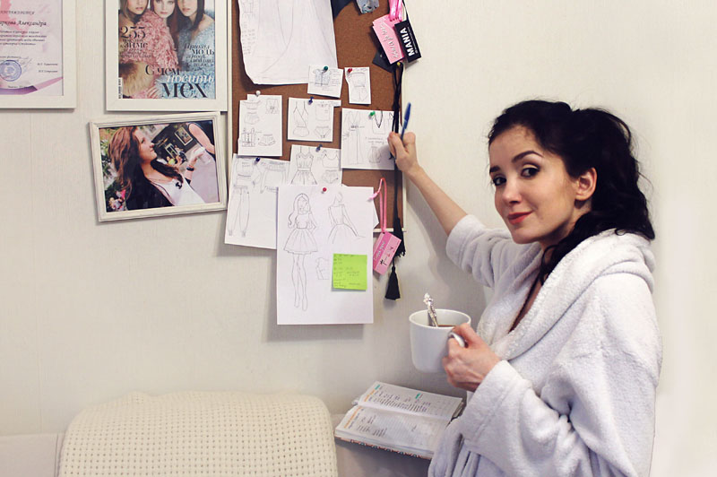 Мой пик активности приходится на ночь. По ночам я делаю свою работу лучше всего: отвечаю на сообщения, заполняю smm- planer для моего рабочего Instagram или дошиваю очередное платье.