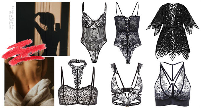 | Верхний ряд: кружевное боди, кружевное боди, халатик; нижний ряд: бра, бра, бра. |