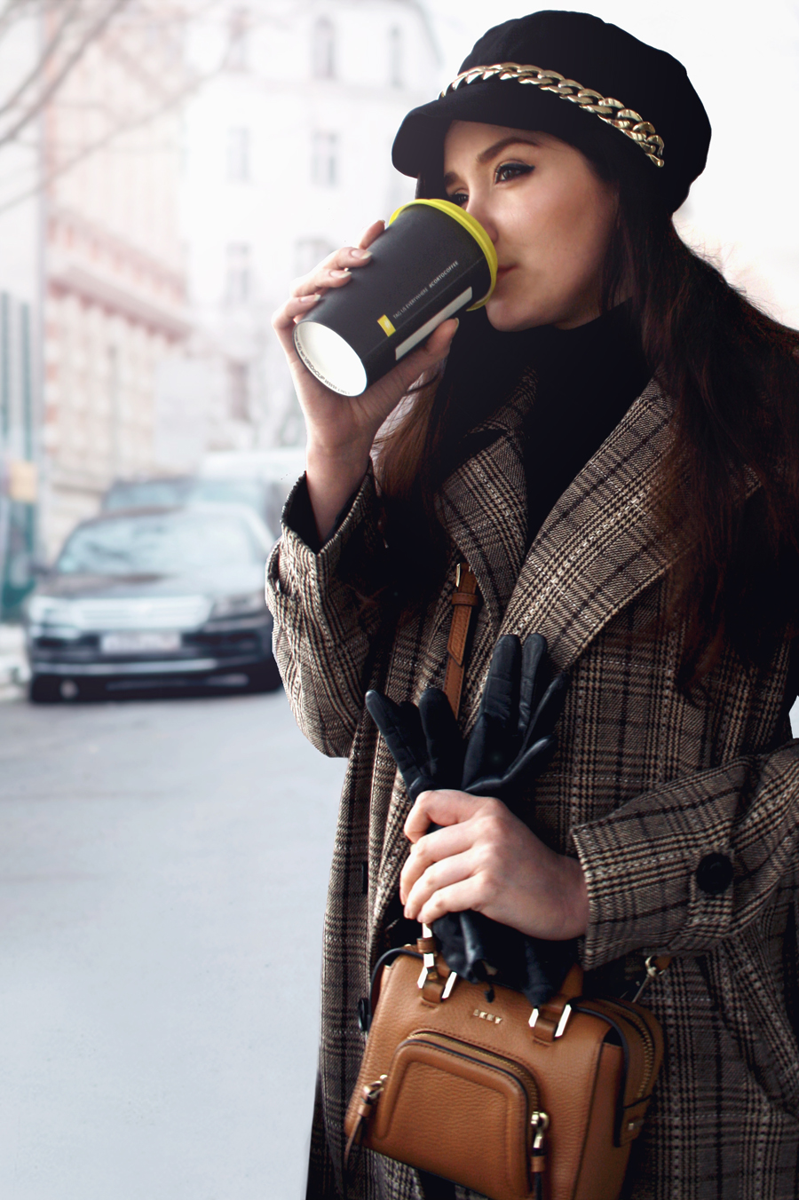 Пальто - Zaful | Джинсы- Mango | Сумка- DKNY | Перчатки и ботильоны - no name | Кепи- сшила сама