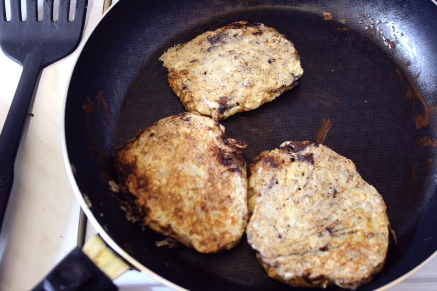 Руками не формуем. Просто все перемешиваем, и на сковородку.